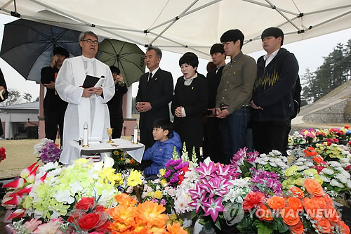 (청주=연합뉴스) 황정현 기자 = 세월호 참사 1주년인 16일 오후 2시께 청주 천주교 공원묘지.
