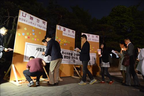 서울대교구는 세월호 참사 직후 명동대성당 뒤편 성모동산에 희생자의 안식, 유가족의 위안, 구조대원과 자원봉사자의 안전 등을 위해 기도하는 '메시지벽'을 설치하고 벽 앞에서 희생자를 위한 9일 기도와 실종자를 위한 기도회를 진행한 바 있다.