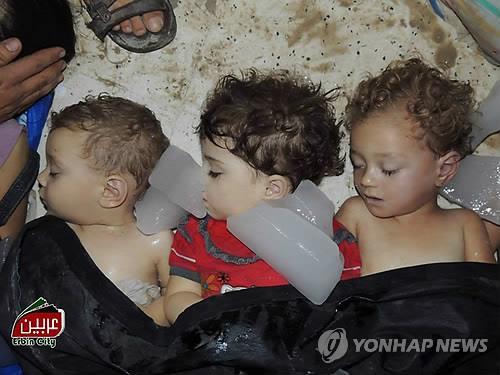 염소가스에 죽는 시리아 아이들 영상에 유엔대사들 '눈물'(종합)