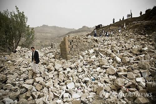 | △ 아랍 동맹군 공습에 파괴된 예멘 수도 사나 인근 마을. (AP=연합뉴스) |