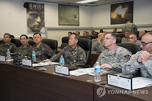 | △ 부대 현황 보고받는 최윤희 합참의장 (서울=연합뉴스) 최윤희 합참의장이 20일 주한 미 2사단을 방문, 부대 현황을 보고받고 있다. ( 합동참모본부 제공 ) |