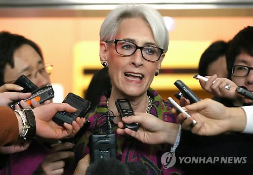 | △ (서울=연합뉴스) 서명곤 기자 = 지난 1월 방한한 웬디 셔먼 미국 국무부 정무담당 차관이 서울 종로구 도렴동 외교부 청사에서 윤병세 외교부 장관을 예방한 뒤 청사를 떠나며 취재진의 질문에 답하고 있다. 2015.1.29 |