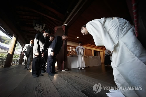 (도쿄=연합뉴스) 김용수 이세원 특파원 = 아베 신조(安倍晋三) 일본 총리는 21일 시작된 야스쿠니(靖國)신사 춘계 예대제(例大祭·제사)에 맞춰 '내각 총리대신 아베 신조' 명의로 '마사카키'(眞신<木+神>)로 불리는 공물을 봉납했다고 교도통신이 보도했다.