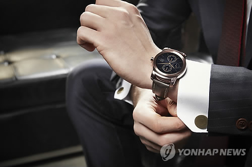 | △ LG전자, 'LG 워치 어베인' MWC서 첫 공개 (서울=연합뉴스) LG전자는 오는 3월 스페인 바로셀로나에서 열리는 '모바일월드콩그레스(MWC) 2015'에서 새로운 스마트워치 'LG 워치 어베인(Urbane)'을 처음 공개한다고 16일 밝혔다. 'LG 워치 어베인'은 최신 안드로이드 웨어 버전 운영체제를 탑재해, 안드로이드 운영체제 4.3 이상의 모든 스마트폰과 호환 가능하다. 2015.2.16 << LG전자 제공 >> photo@yna.co.kr |