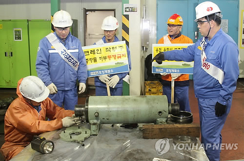 | △ 제철소 내 안전관리 조사를 하는 직원들 (연합뉴스 자료사진) |