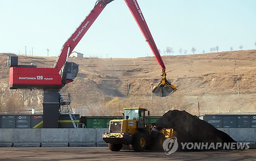 | △ 남·북·러 물류 협력 사업인 나진-하산 프로젝트의 사업 타당성을 확인하기 위해 진행된 러시아 시베리아산 유연탄 선적작업이 지난해 11월 27일 나진항에서 이뤄지고 있다. (연합뉴스 자료사진) |
