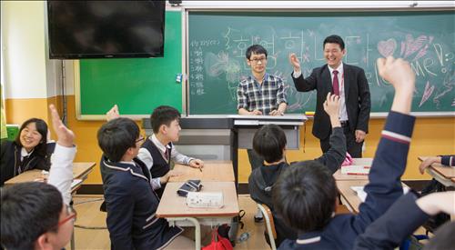 일일 교사들은 미리 준비해온 파워포인트 화면이나 동영상을 띄우거나 칠판에 글씨를 써가며 자신의 인생 경험을 소개하고 글로벌 인재로서 갖춰야 할 점을 당부했다.