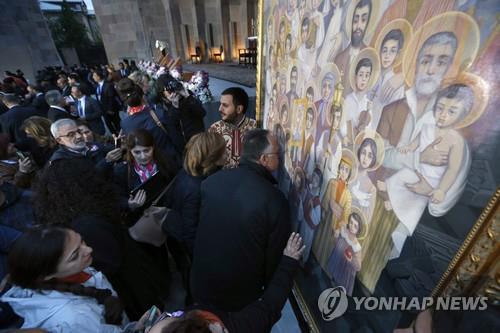 (에치미아진<아르메니아) AFP=연합뉴스) 아르메니아 정교회는 23일(현지시간) 제1차 세계대전 당시 오스만제국에 학살당한 150만명에 대한 시성식을 거행했다.