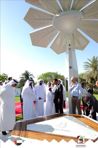 23일(현지시간) 두바이 시내 자빌 공원에 설치된 이 장치는 중동지역에서 흔히 볼 수 있는 대추야자 나무를 본뜬 모양으로 잎에 해당하는 부분에 태양전지판이 달려 자가발전 할 수 있다.
