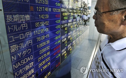 | △ 일본 국채에 해외자금 몰린다…유럽 국채금리 하락 탓 (도쿄 교도=연합뉴스) 일본 국채에 대한 해외 자금 유입이 가속화되고 있다고 니혼게이자이신문이 24일 보도했다. 사진은 지난 2010년 8월4일 도쿄 야에스(八重洲) 증권회사 전광판에 표시된 장기국채 가격을 지켜보는 남성. 2015.4.24 chungwon@yna.co.kr |