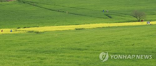 싱그러운 풀내음이 가득한 보리밭 샛길을 걷다가 보면 끝자락에 펼쳐진 유채꽃밭도 덤으로 즐길 수 있다.