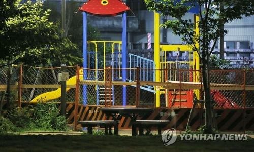 | △ (도쿄 교도=연합뉴스) 23일 오후 일본 도쿄도(東京都) 도시마(豊島)구 소재 '이케부쿠로혼초(池袋本町) 전차가 보이는 공원'에 있는 복합형 놀이기구가 울타리에 둘러싸여 있다. |