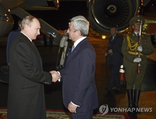 | △ 블라디미르 푸틴 러시아 대통령(왼쪽)과 세르즈 사르키샨 아르메니아 대통령(오른쪽) |