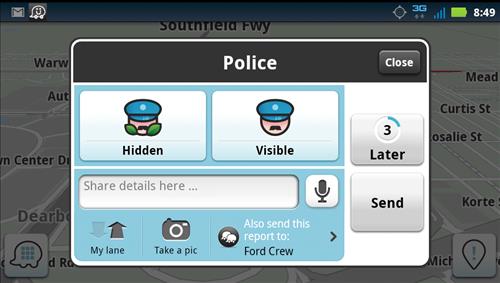사용자들은 이 앱을 통해 차량 정체, 사고, 도로 공사, 무인카메라, 경찰차의 위치 정보를 실시간으로 공유한다.
