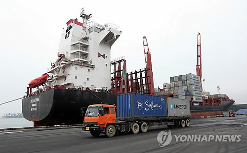| △ 컨테이너 선적 작업이 이뤄지는 강원 동해항 모습(자료사진) |