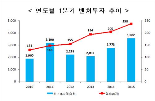 (서울=연합뉴스) 홍지인 기자 = 중소기업청은 올해 1분기 벤처투자 규모가 3천582억원으로 지난해 같은 기간 2천773억원보다 29.2% 늘어났다고 26일 밝혔다.
