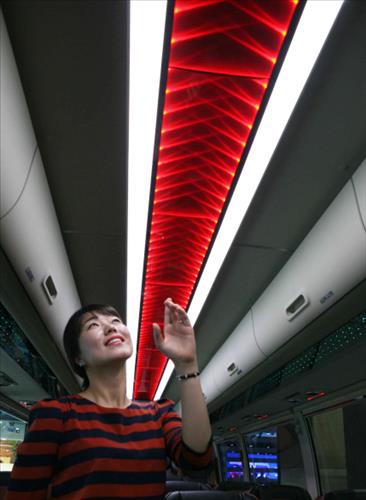 (서울=연합뉴스) 김연숙 기자 = 기아자동차의 고급 대형버스 '뉴 그랜버드 이노베이션 유로6'에 장착된 LG이노텍[011070]의 세계 첫 차량용 LED 입체조명 모듈이 좋은 반응을 얻고 있다.