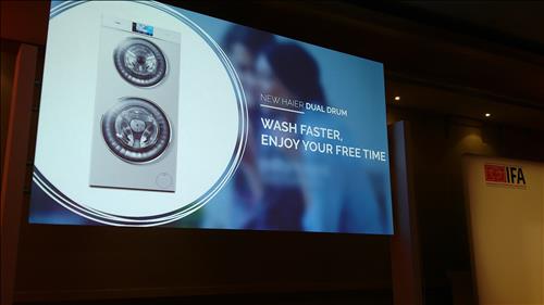 <사진 : 하이얼이 IFA 글로벌 프레스 콘퍼런스에서 공개한 '뉴 하이얼 듀얼 드럼 세탁기>