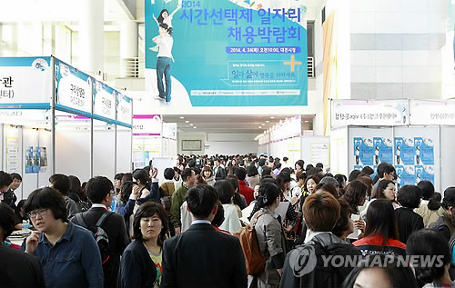 | △ 지난해 4월 24일 대전시청 1층 로비에서 열린 '시간선택제 일자리 채용박람회'에 많은 시민이 몰려 성황을 이뤘다. (연합뉴스 자료사진) |