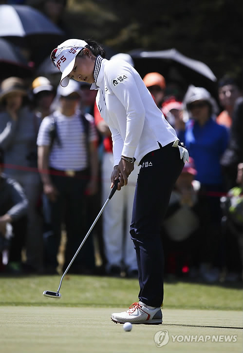 | △ 퍼팅하는 고진영 (서울=연합뉴스) 26일 경남 김해 가야CC에서 열린 넥센 세인트나인 마스터즈 2015 파이널라운드 8번홀에서 고진영이 퍼팅을 하고 있다. << KLPGA 제공 >> photo@yna.co.kr |