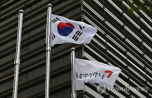 | △ '아시아나 최대주주 금호산업 누가 가져가나?' (서울=연합뉴스) 한종찬 기자 = 금호아시아나그룹 지배구조의 핵심에 있는 금호산업 매각을 위한 본입찰이 오늘 마감된다. 금호산업 매각 주관사인 산업은행은 지난달부터 진행한 5주간의 예비실사를 마치고 28일 오후 3시 본입찰 제안서 접수를 마감한다. 2014년 시공능력평가에서 20위에 오른 중견 건설업체인 금호산업은 아시아나항공의 최대주주(지분 30.08%)여서 금호산업을 지배하면 사실상 아시아나항공 경영권을 가져갈 수 있다. 사진은 이날 오후 서울 종로구 신문로 금호아시아나 본관 앞에 설치된 사기. |