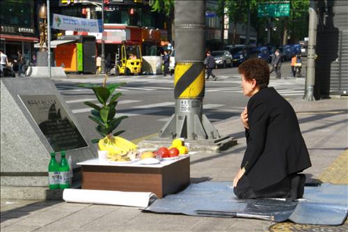 이씨는 매일 아침 7∼8시께 표석 주위를 빗자루로 쓸고 표석을 닦는 '의식'을 표석이 처음 생긴 1985년부터 지금까지 하루도 빠짐없이 해오고 있다. 비가 오는 날에도 이 일과는 거르지 않는다.