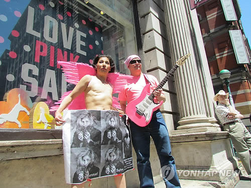 | △ 한국계 행위예술가 유방암으로 가슴을 잘라낸 뒤 '가슴이 없는 여성도 아름답다'면서 가슴노출 행위예술을 펼치고 있는 모습<자료사진> |
