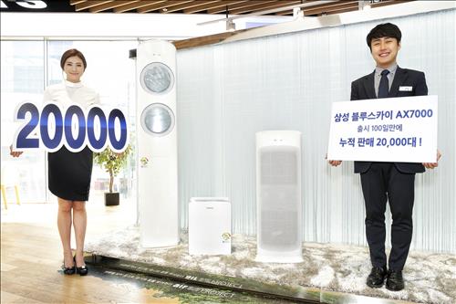 (서울=연합뉴스) 옥철 기자 = 삼성 프리미엄 중형 공기청정기 '블루스카이 AX7000'이 출시 100일 만에 누적 판매량 2만대를 돌파했다고 삼성전자[005930]가 29일 밝혔다.