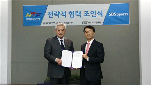 WTF와 SBS스포츠는 29일 서울 마포구 SBS 프리즘타워에서 태권도 콘텐츠의 경쟁력 향상을 위한 전략적 제휴를 체결했다.