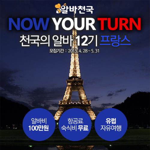 (서울=연합뉴스) 김연숙 기자 = 아르바이트 전문포털 알바천국은 프랑스에서 문화복원 아르바이트를 하고 총 1천만원 상당의 혜택을 누리는 프로그램 '천국의 알바' 12기를 모집한다고 29일 밝혔다.