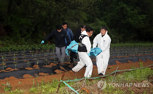 | △ '잠적 무기수' 홍승만 변사체로 발견 (창녕=연합뉴스) 최병길 기자 = '잠적 무기수' 홍승만이 29일 오후 숨진 채 발견된 경남 창녕군 장마면 야산에서 경찰이 변사체를 수습하고 있다. |