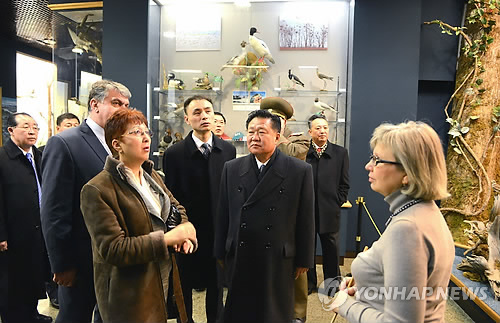 | △ 러시아 간 북한 최룡해 (평양 조선중앙통신=연합뉴스) 북한 김정은 국방위원회 제1위원장의 특사로 러시아를 방문한 최룡해 노동당 비서의 활동 모습을 조선중앙통신이 25일 보도했다. 이날 조선중앙통신은 '김정은 동지의 특사의 러시아연방 방문과 관련한 보도'에서 최 비서가 러시아 극동 지방에서 러시아 동부군 5군 지휘부와 태평양함대 군사역사박물관 등 군사 관련 시설을 방문했다고 밝혔다. 2014.11.25 photo@yna.co.kr |