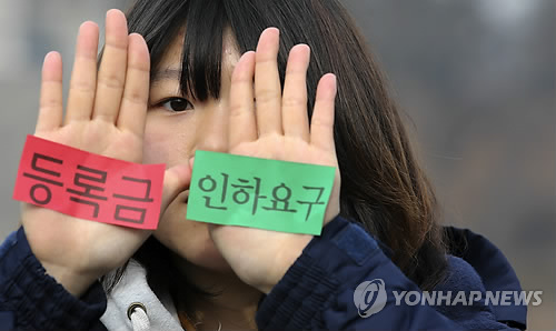 학생들은 정부가 지원하는 국가장학금 등에도 연평균 600만원이 넘는 감당하기에는 부담이 크기 때문에 인하율이 적다는 불만을 제기해왔다.