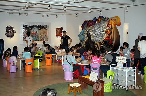 | △ "체험은 즐거워" (파주=연합뉴스) 우영식 기자 = 1일 경기도 파주출판도시에서 '어린이 책잔치'가 열려 어린이들이 피노키오박물관에서 체험행사에 열중하고 있다. 2015.5.1 wyshik@yna.co.kr |