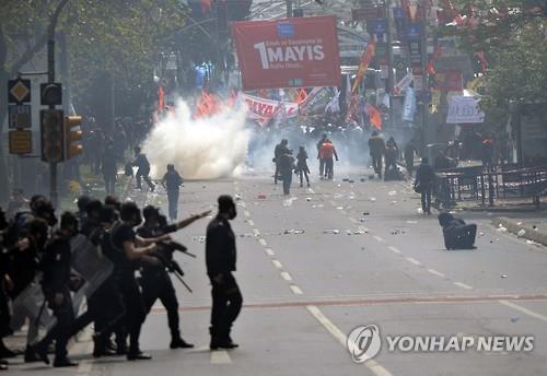 터키 최대 도시인 이스탄불에서는 곳곳에서 노동절 시위가 벌어져 도심이 마비됐다.
