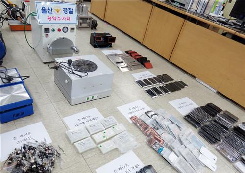 (울산=연합뉴스) 김근주 기자 = 고장 난 중고 스마트폰에 중국에서 들여온 짝퉁 부품을 조립해 새 제품인 것처럼 속여 판매한 일당이 경찰에 붙잡혔다.