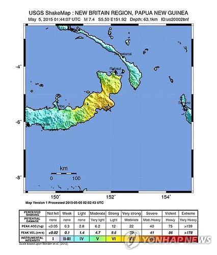 (서울=연합뉴스) 장재은 기자 = 파푸아뉴기니에서 5일(현지시간) 규모 7.4의 지진이 발생해 쓰나미 경보가 내려졌다.