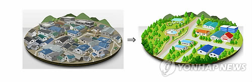 | △ 정부 개발제한구역 규제 개선 방안 발표 (서울=연합뉴스) 정부는 그린벨트내 축사 등 건축물이 밀집하거나 무단 용도변경으로 훼손된 지역들을 해소하기 위해 '공공기여형 훼손지정비제도'를 도입한다. 이번 조치로 70만m2 이상의 훼손지가 정비되고, 이 중 20만m2가 공원녹지로 조성(소공원 100개 조성 효과)되어 개발제한구역의 기능 회복에 기여할 것이라고 국토부는 밝혔다. 2015.5.6 << 국토부 제공 >> photo@yna.co.kr |