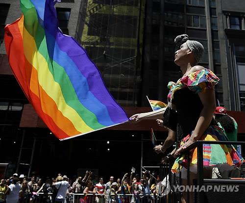 | △ 2014년 6월 29일(현지시간) 미국 뉴욕에서 레즈비언·게이·양성애자·성전환자(LGBT) 등 '성소수자' 의 권리를 주장하는 축제인 '게이 프라이드 행진'(Gay Pride Parade)이 열리고 있다. (AP=연합뉴스DB) |