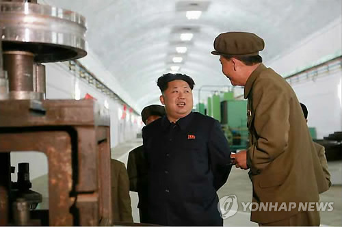 | △ 김정은, 룡성기계 산하공장 시찰 (서울=연합뉴스) 김정은 북한 국방위원회 제1위원장이 함경남도 룡성기계연합기업소내 '2월11일 공장'을 현지 지도했다고 노동신문이 7일 보도했다. 김정은 제1위원장이 공장을 둘러보고 있다. |