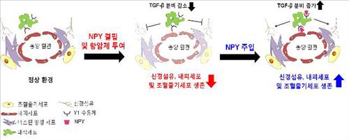 이는 NPY가 대식세포에 존재하는 Y1 수용체와 반응해 신경세포의 생존 및 증식에 관여하는 형질전환증식인자β(TGF-β)의 분비를 증가시켜 나타나는 현상이라고 연구팀은 설명했다.
