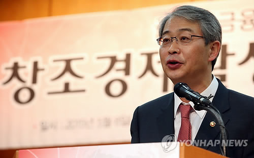 | △ 임종룡 "국민연금·퇴직연금 활용방안 찾아야" (서울=연합뉴스) 서명곤 기자 = 임종룡 금융위원장이 8일 오전 서울 중구 명동 은행회관에서 열린 창조경제 활성화를 위한 금융제도 개혁 정책심포지엄에서 한국의 금융개혁 방향을 주제로 특별연설을 하고 있다. seephoto@yna.co.kr |