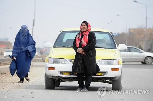 | △ (AP=연합뉴스) 아프가니스탄 최초이자 유일한 여성 택시 운전사 사라 바하이(40)가 북부 발크주(州) 주도 마자르 이 샤리프에서 지난 3월 3일(현지시간) 승객을 기다리고 있다. 여자는 남자보다 열등하다는 인식 속에 극심한 성차별을 겪어야하는 이곳에서 용기있게 택시 운전사의 길을 택한 바하이는 이제 당당하게 가장 역할을 하고 있으며 아프간 여성들의 롤 모델이 되고 있다. |
