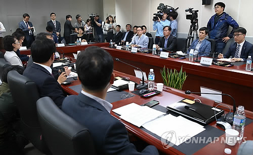 | △ 지난 4일 오전 서울 강남구 도곡동 한국소비자원 서울지원에서 열린 '가짜 백수오' 논란 관련 간담회에서 홈쇼핑 업체 관계자들이 이남희 피해구제국장의 발언을 듣고 있다. |