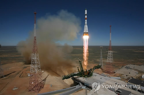 | △ 지난달 28일(현지시간) 카자흐스탄 바이코누르 우주기지에서 러시아 우주화물선 '프로그레스 M-27M'을 탑재한 '소유스 2.1a'가 발사되는 모습. (EPA=연합뉴스 자료사진) |