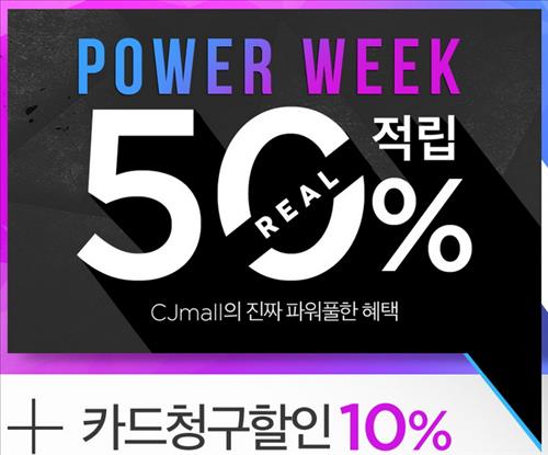 이번 '파워위크' 행사 기간 20만원이상 구매한 고객 가운데 1만명(선착순)은 CJ모바일 앱을 통해 신청하면 구매금액의 50%에 해당하는 CJ몰 적립금을 받는다. 다만 최대 적립금은 10만원이고, 한 사람이 한 번만 받을 수 있다.