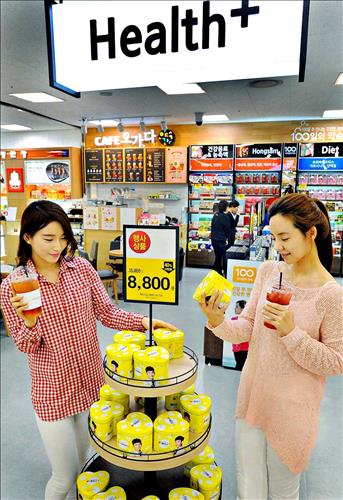 매장을 방문한 고객은 헬스 플러스에서 300여종의 건강기능식품을 구매할 수 있고 전문 상담사에게 사상 체질 진단 등을 받을 수 있다.
