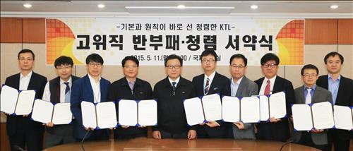 (서울=연합뉴스) 이봉준 기자 = 한국산업기술시험원(KTL)은 11일 서울 구로구 서울지역본부 국제회의실에서 이원복 원장과 임직원들이 참석한 가운데 '반부패 청렴 실천을 위한 서약식'을 열었다.