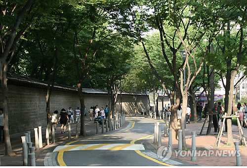 | △ 차량속도 저감 시설이 잘 설치된 보행자우선도로 `덕수궁 돌담길'. (연합뉴스 자료사진) |