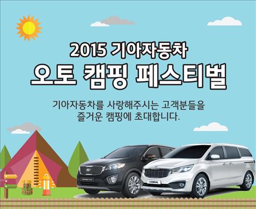 (서울=연합뉴스) 고웅석 기자 = 기아차[000270]는 내달부터 충주호 캠핑월드에서 진행하는 '2015 오토캠핑 페스티벌'에 참여할 고객 320팀을 모집한다고 12일 밝혔다.